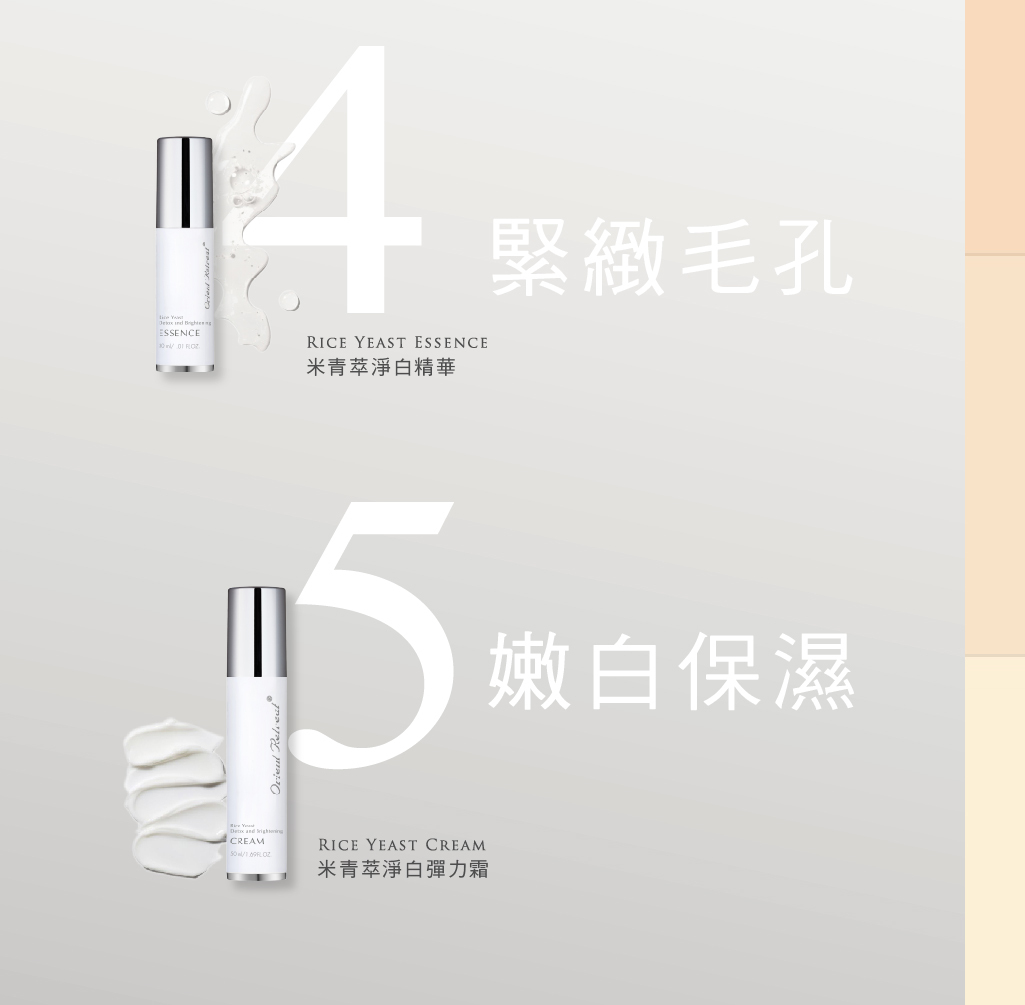 主要成分:米糠萃取、酵母萃取、傳明酸、茉莉精油等