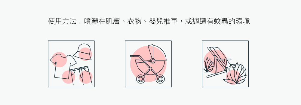 使用方法:噴灑在肌膚及衣物上,或週遭有蚊蟲環境